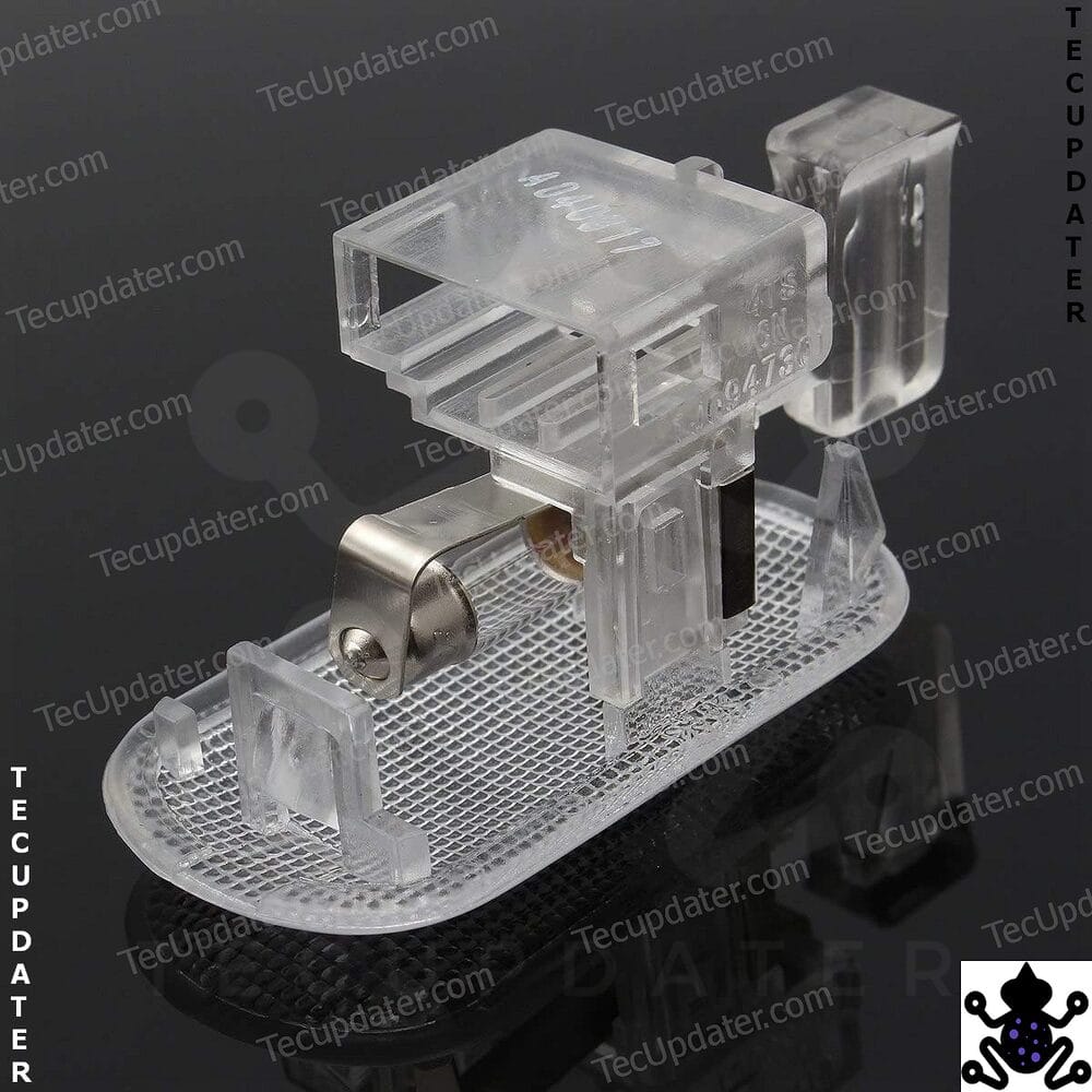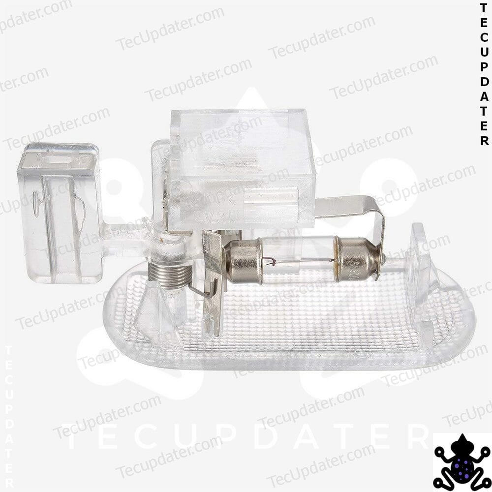 This is a glove box illumination kit built specifically for the Volkswagen Polo (PQ25/6R, India-market), Vento, Ameo, and Skoda Rapid. The light unit itself has a mechanical switch lever integrated into its body — when the glove box door is open, the lever is free and the light stays on. When you close the door, the door presses against that lever and cuts the light. No additional switch, no relay, no module — the mechanism is entirely self-contained in the light unit.