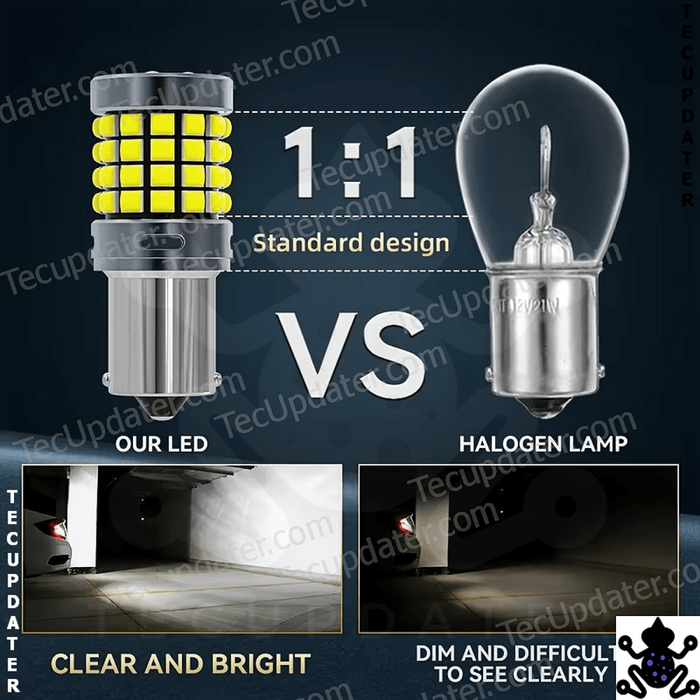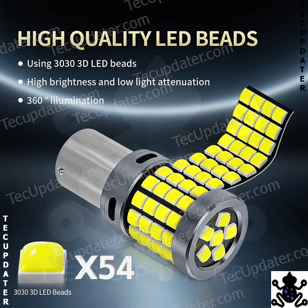 The TecUpdater 1156 BA15S CANBUS LED bulb is a high-output halogen replacement designed for single-contact automotive lighting positions. It is available in two common configurations: